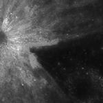 The ejecta pattern of this unnamed crater left a slice of Mare Undarum (Sea of Waves) uncovered, east of the crater Firmicus. When an impact ejecta blanket is not uniform, the ejecta is defined as asymmetric. Craters with asymmetric ejecta are either caused by pre-impact differences in composition, unusual topography, or an oblique angle of impact. Asteroids hit the Moon at fantastically high speeds, greater than 16 km per second (or 35,000 miles per hour), and most of the craters left by these impacts are circular. However, the shape of the crater (or the distribution of the ejecta blanket) changes when the angle between the asteroid path and the surface becomes small, 15° or less. In such a low angle impact, the ejecta has more momentum in the direction of travel of the impactor, which causes the asymmetric ray patterns. In this case the extent of ejecta extends to the north and south and a lack of ejecta to the east, probably indicating that the impactor probably came from the east. Another example of an oblique impact is Messier, where the shape of the crater is elliptical due to the angle of impact.