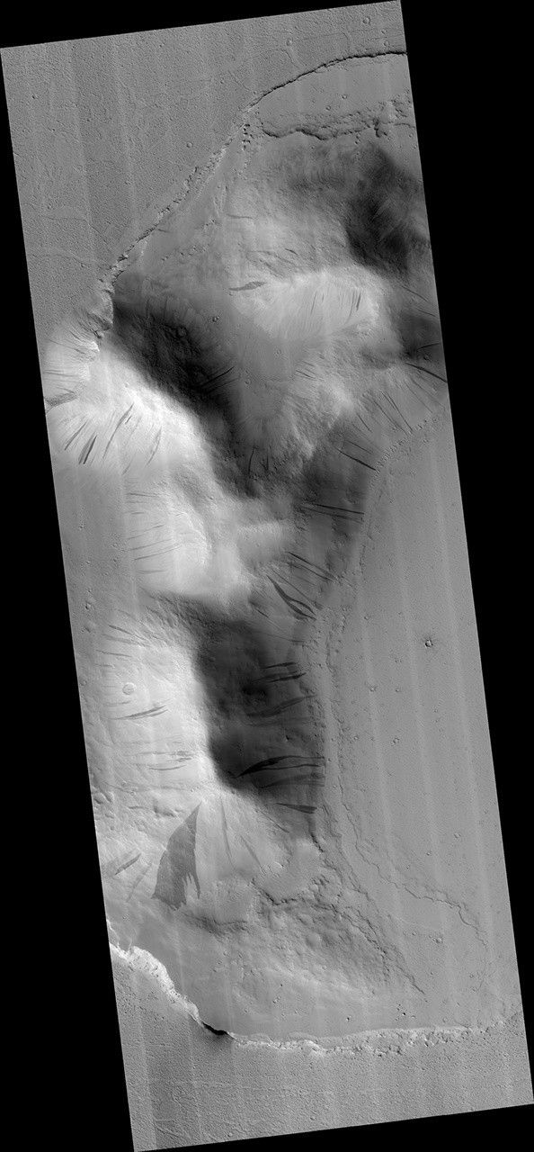 We have been monitoring the slope streaks on this hill for several years. There are definitive changes between this September 2018 image and a previous one in December 2016. Earlier streaks have since faded and new, darker streaks are visible. These streaks are tens of meters wide.