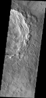 Note: this THEMIS visual image has not been radiometrically nor geometrically calibrated for this preliminary release. An empirical correction has been performed to remove instrumental effects. A linear shift has been applied in the cross-track and down-track direction to approximate spacecraft and planetary motion. Fully calibrated and geometrically projected images will be released through the Planetary Data System in accordance with Project policies at a later time.