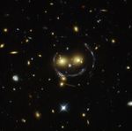 Those eyes are actually very bright galaxies, and the smile lines are, in reality, arcs caused by an effect known as strong gravitational lensing.