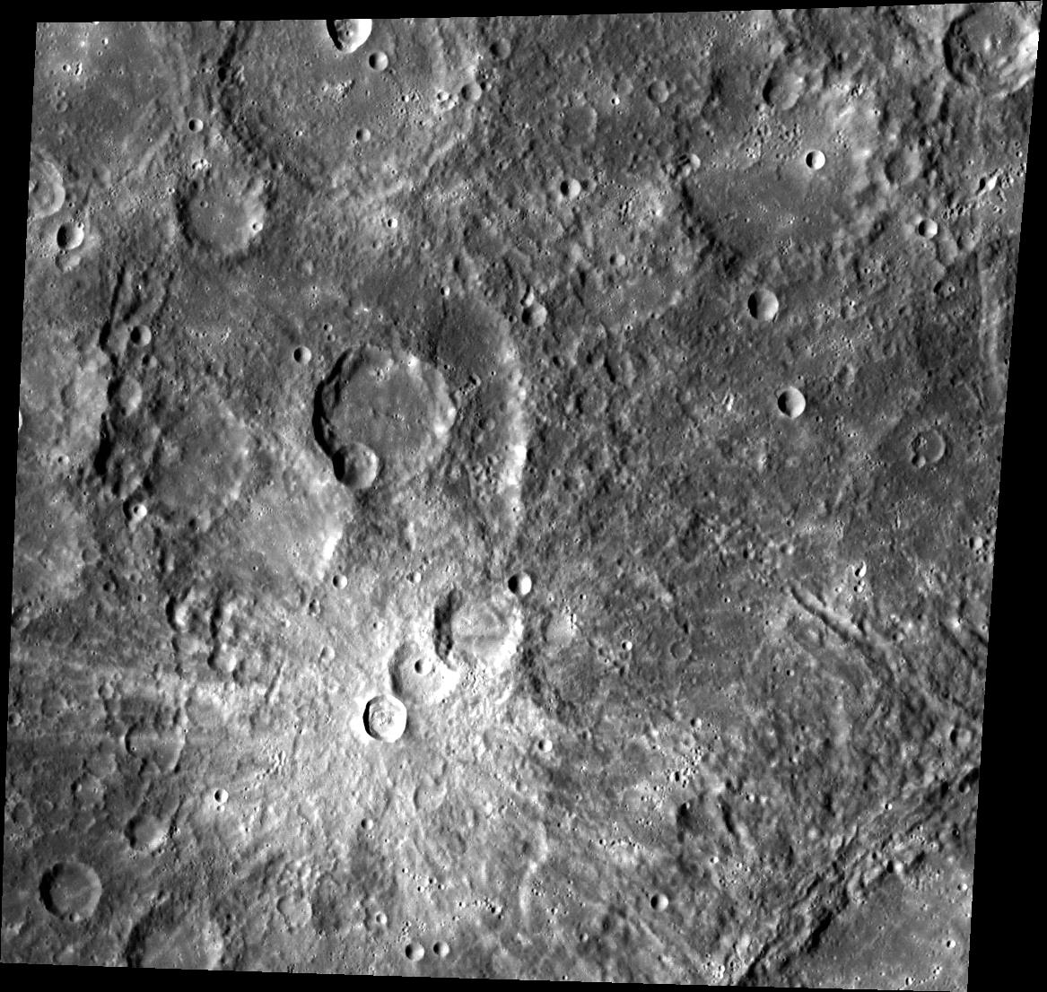 This image was acquired as a high-resolution targeted observation. Targeted observations are images of a small area on Mercury's surface at resolutions much higher than the 200-meter/pixel morphology base map. It is not possible to cover all of Mercury's surface at this high resolution, but typically several areas of high scientific interest are imaged in this mode each week.