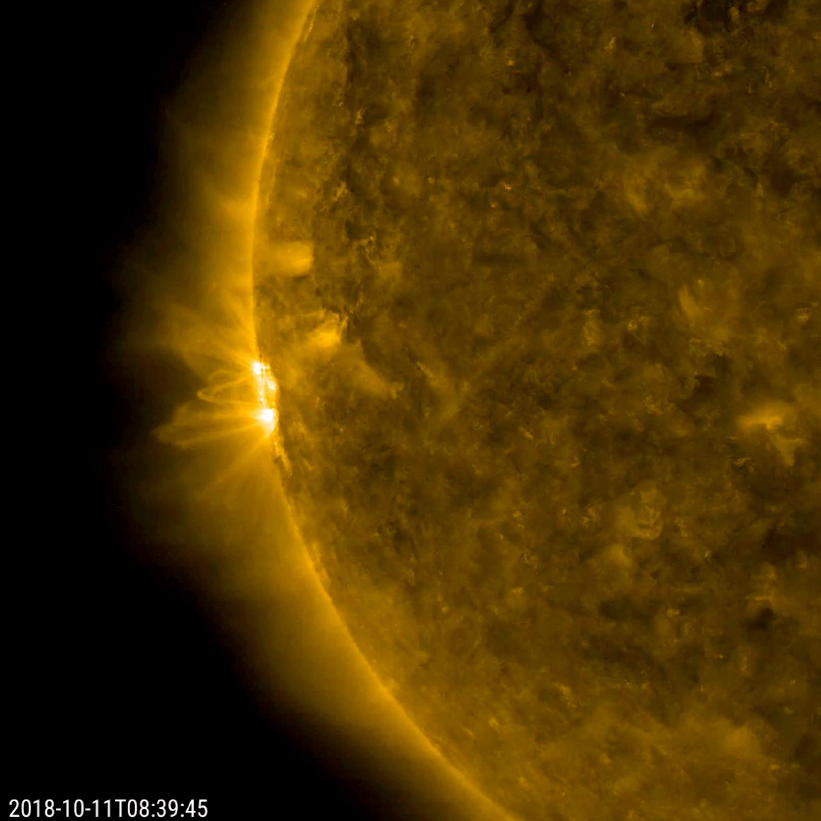 The Sun's rotation brought a new active region into view, revealing the dynamic arches and twisting streams of its magnetic field (Oct. 10-11, 2018). A new active region is becoming more of a rare sight, as the Sun is currently approaching solar minimum -- the point of the 11-year solar cycle when activity is most reduced. The video clip, showing images taken in a wavelength of extreme ultraviolet light covers 33 hours and consists of over 500 frames (i.e., one frame selected every 4 minutes).