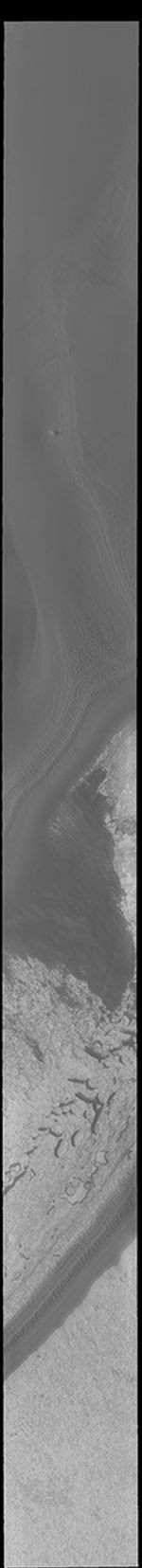 Today's VIS image shows part of the south polar cap. This image was taken near the end of southern summer. The cap was created over millions of years with deposition of ice and dust during different seasons, creating layers. The ice surface contains several different textures which can be seen in this image. The south polar cap is called Australe Planum.