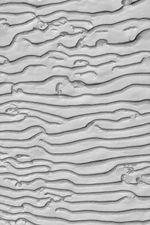 The terrain of the south polar residual ice cap, made up mostly of frozen carbon dioxide, has come to be known by many as "swiss cheese terrain," because many areas of the cap resemble slices of swiss cheese. However, not all of the south polar cap looks like a tasty lunch food. This Mars Global Surveyor (MGS) Mars Orbiter Camera (MOC) image shows a series of curving scarps formed by erosion and sublimation of carbon dioxide from the south polar cap. This area is located near 86.3°S, 51.2°W. The image is illuminated by sunlight from the upper left; the area is about 1.5 km (0.9 mi) wide.