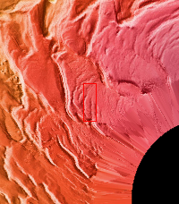 Today's VIS image of the south pole shows a surface texture called "thumbprint," for its uncanny resemblance to human fingerprints.