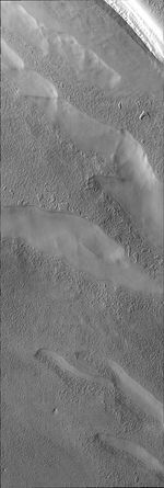 Many different surface textures are found on the polar caps. This VIS images shows part of the surface of the south polar cap.