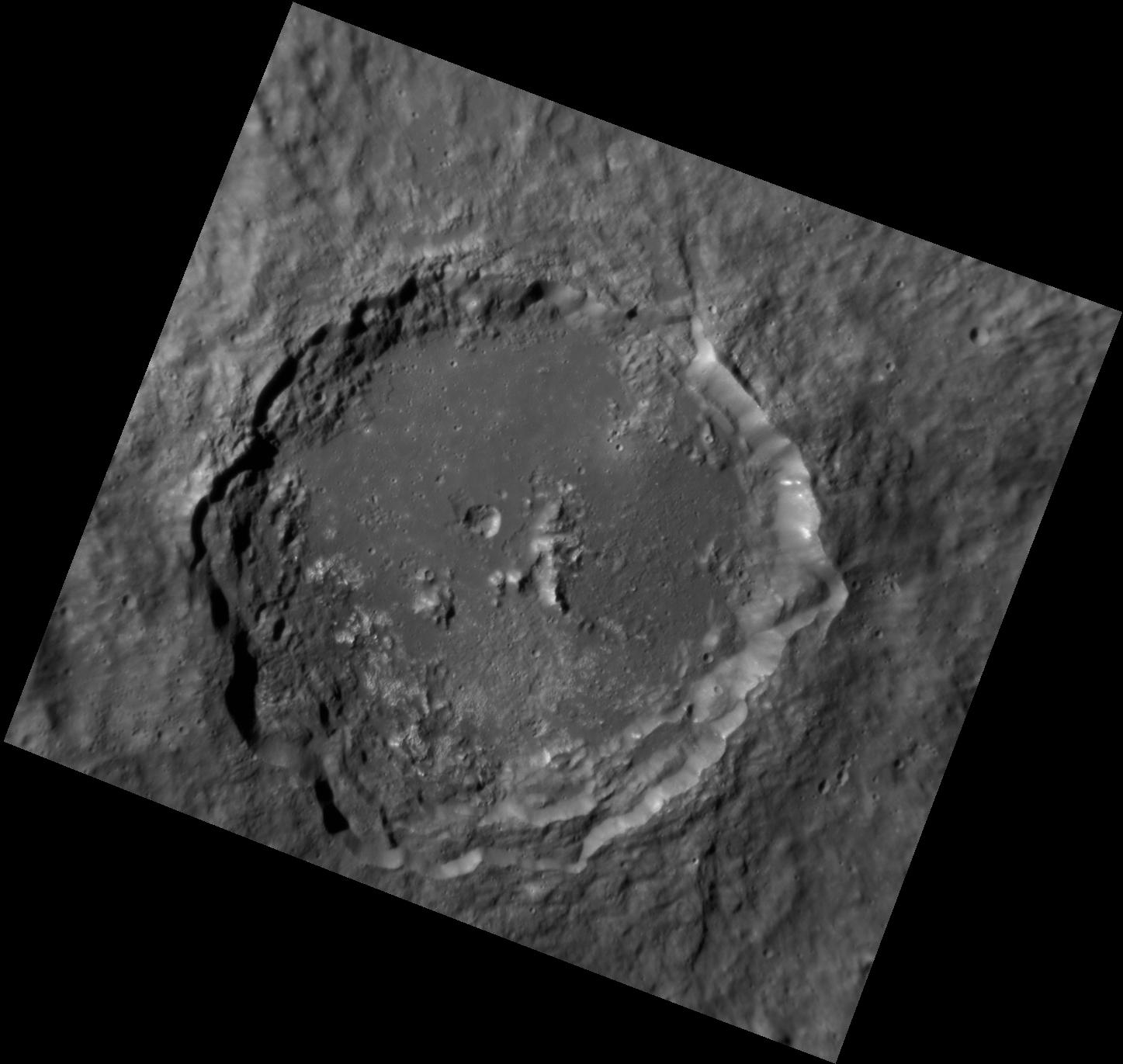 Scale: This crater is about 76.6 km (47.6 mi) in diameter.