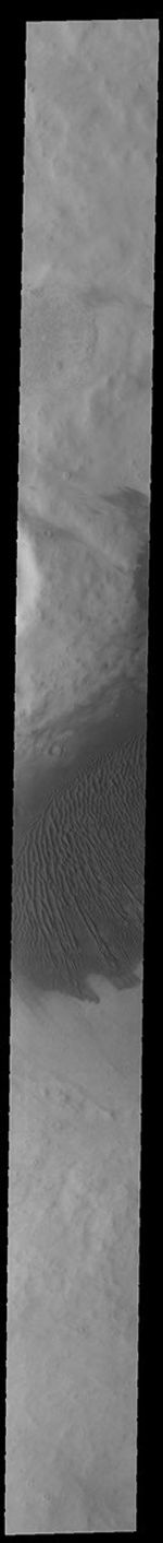 Not all dune fields on Mars are located in deep craters. This dune field in southern Cimmeria Terra is located in the very shallow remnants of an old crater. The area is still at a lower elevation than it's surroundings and can trap sand moving in the region.