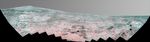 In the center foreground, the turret of tools at the end of Spirit's robotic arm appears in duplicate because the arm was repositioned between the days when the images making up that part of the mosaic were taken.