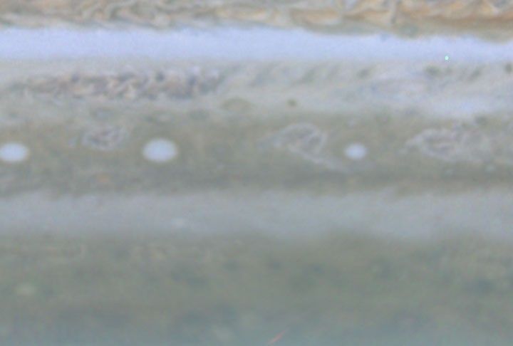 This movie clip (of which the release image is a still frame), created from images taken by NASA's Cassini spacecraft, shows white oval storms in Jupiter's southern hemisphere that rotate counterclockwise, similar to the larger Great Red Spot. These storms are very stable and persist for decades.