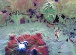 The image was acquired by the Spaceborne Imaging Radar-C and X-band Synthetic Aperture Radar aboard the space shuttle Endeavour on its 25th orbit on October 1, 1994. The image shows an area approximately 30 kilometers by 60 kilometers (18.5 miles by 37 miles) that is centered at 56.18 degrees north latitude and 160.78 degrees east longitude. North is toward the top of the image. The Kamchatka volcanoes are among the most active volcanoes in the world. The volcanic zone sits above a tectonic plate boundary, where the Pacific plate is sinking beneath the northeast edge of the Eurasian plate. The Endeavour crew obtained dramatic video and photographic images of this region during the eruption, which will assist scientists in analyzing the dynamics of the current activity. The colors in this image were obtained using the following radar channels: red represents the L-band (horizontally transmitted and received); green represents the L-band (horizontally transmitted and vertically received); blue represents the C-band (horizontally transmitted and vertically received).
