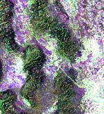 This radar image is of an area thought to contain the ruins of the ancient settlement of Niya. It is located in the southwestern corner of the Taklamakan Desert in China's Sinjiang Province. This oasis was part of the famous Silk Road, an ancient trade route from one of China's earliest capitols, Xian, to the West.