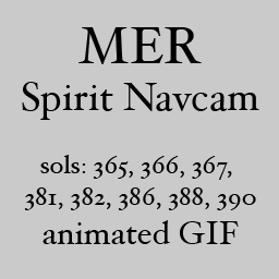 This animation is built from images taken by the navigation camera on NASA's Mars Exploration Rover Spirit from the rover's 365th martian day, or sol (Jan. 11, 2005), through sol 390 (Feb. 6, 2005). During this period, Spirit covered about 80 meters (262 feet) in its climb toward "Cumberland Ridge" in the "Columbia Hills." The sequence includes images from all of the sols on which Spirit drove during this period: sols 365, 366, 371, 381, 382, 386, 388 and 390.
