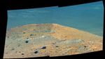 This scene from the panoramic camera (Pancam) on NASA's Mars Exploration Rover Opportunity shows "Spirit Mound" overlooking the floor of Endeavour Crater. The mound stands near the eastern end of "Bitterroot Valley" on the western rim of the crater, and this view faces eastward.