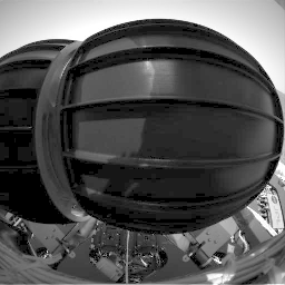 This animation strings together images from the rover's front hazard avoidance camera taken during the stand-up process of the Mars Exploration Rover Spirit. The first frame shows the rover's wheels tucked under in pre-stand-up position. The following frames show the stages of the stand-up process. The rover first elevates itself and unfolds the wheels. It then lowers, lifts and lowers again into its final position. Note the changing camera perspectives of the martian landscape, indicating the rover's heightened and lowered positions.