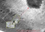 Scientists created this overlay map by laying navigation and panoramic camera images taken from the surface of Mars on top of one of Spirit's descent images taken as the spacecraft descended to the martian surface. The map was created to help track the path that Spirit has traveled through sol 44 and to put into perspective the distance left to travel before reaching the edge of the large crater nicknamed "Bonneville."