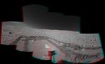 This stereo view was assembled from images taken by the navigation camera on NASA's Mars Exploration Rover Spirit during the rover's 337th martian day, or sol (Dec. 14, 2004). Spirit's position, catalogued as Site 100 for the mission, was on the slope of "Husband Hill." The rover had driven 6 meters (20 feet) on Sol 337 after examining a rock called "Wishstone" for several sols. That rock is just to the left of the top of the arch traced by the rover tracks in this view. Spirit experienced slippage of up to 80 percent on uphill portions of the day's drive. The view is presented here in a cylindrical-perspective projection with geometric seam correction.