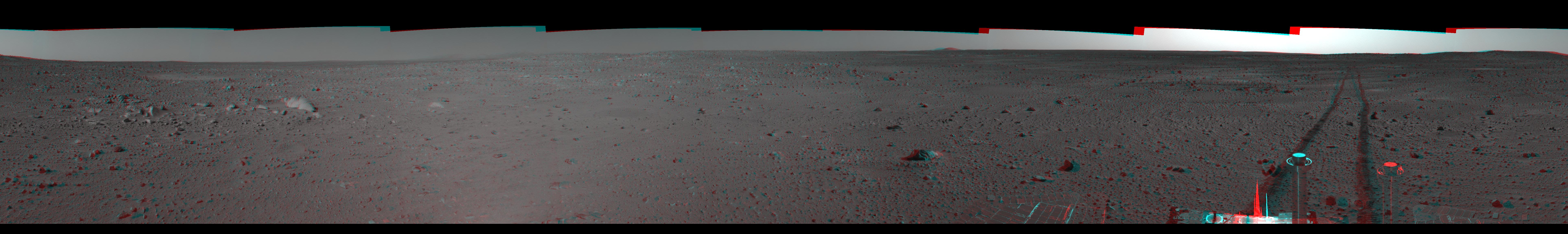 See PIA05778 for left eye view and PIA05779 for right eye view of this left eye cylindrical-perspective mosaic.