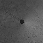 This vertical projection was assembled from images taken by the navigation camera on the Mars Exploration Rover Spirit on sol 110 (April 24, 2004) at a region dubbed "site 35." Spirit is sitting approximately 33 meters (100 feet) away from the northeast rim of "Missoula" crater.