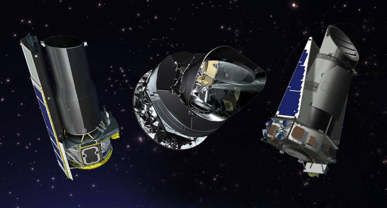 From left to right, artist's concepts of the Spitzer, Planck and Kepler space telescopes. NASA extended Spitzer and Kepler for two additional years; and the U.S. portion of Planck, a European Space Agency mission, for one year.