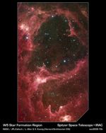 Like other massive star-forming regions, such as Orion and Carina, W5 contains large cavities that were carved out by radiation and winds from the region's most massive stars. According to the theory of triggered star-formation, the carving out of these cavities pushes gas together, causing it to ignite into successive generations of new stars.