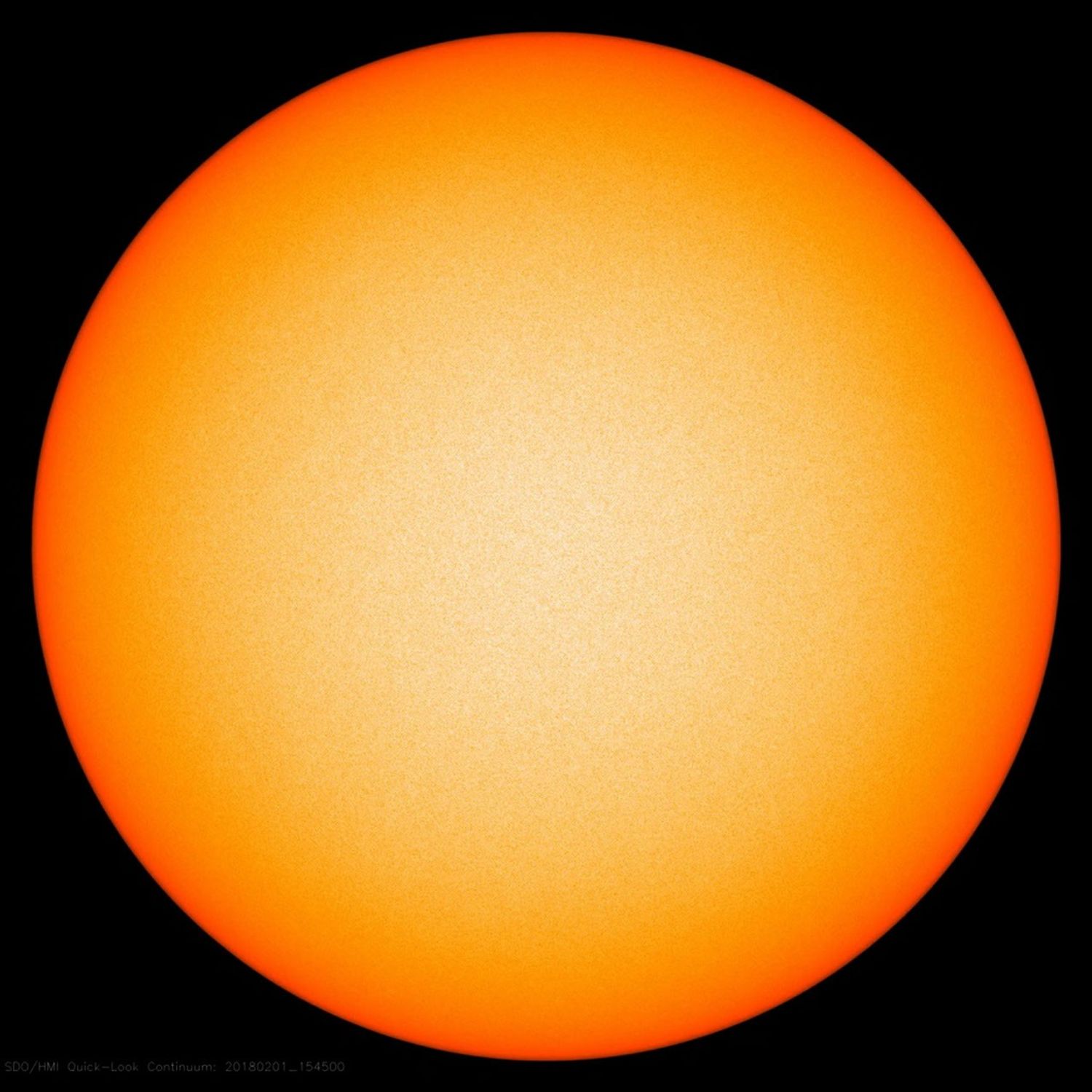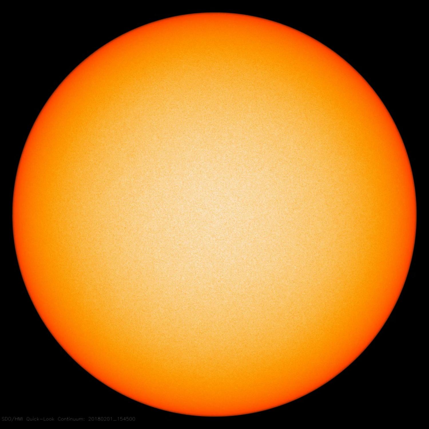 NASA's Solar Dynamics Observatory observed no sunspots for almost two weeks (as of Feb. 1, 2018) and just has a single, tiny one that appeared on Jan. 31, 2018.