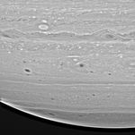 The image was taken with the Cassini spacecraft wide angle camera on Dec. 14, 2004, at a distance of 595,000 kilometers (370,000 miles) from Saturn through a filter sensitive to wavelengths of infrared light centered at 939 nanometers. It has been highly processed to enhance details. The image scale is about 32 kilometers (20 miles) per pixel.