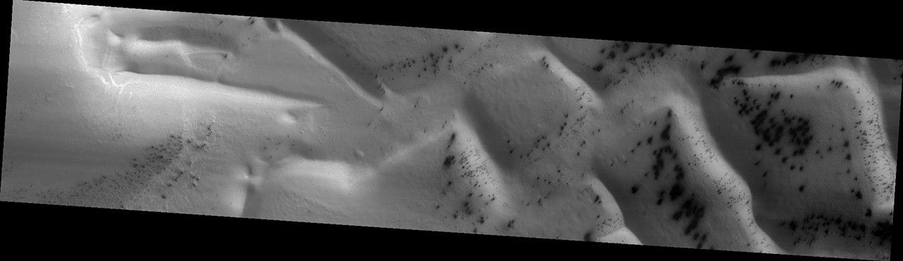 This image, acquired by NASA's Mars Reconnaissance Orbiter, shows there are a few more fans on the ridge as spring activity progresses in Inca City.