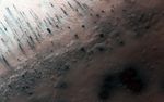 A significant event has occurred in Inca City. The layer of seasonal ice has started to develop long cracks. This is visible in the orange-colored band adjacent to the araneiforms. Fans of dust are emerging from long linear cracks. The cracks form when large plates of ice have no easily ruptured weak spots to release the pressure from gas building up underneath, so the ice simply cracks.