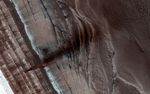 When the sun rises in the spring, the steep edges of the polar layered deposits are the first to warm up. The dry ice sublimes (going directly from a solid to a gas) and destabilizes loose chunks perched on the steep cliff. Material from the weaker layers gets dislodged and cascades down the steep slope.