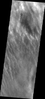 Note: this THEMIS visual image has not been radiometrically nor geometrically calibrated for this preliminary release. An empirical correction has been performed to remove instrumental effects. A linear shift has been applied in the cross-track and down-track direction to approximate spacecraft and planetary motion. Fully calibrated and geometrically projected images will be released through the Planetary Data System in accordance with Project policies at a later time.