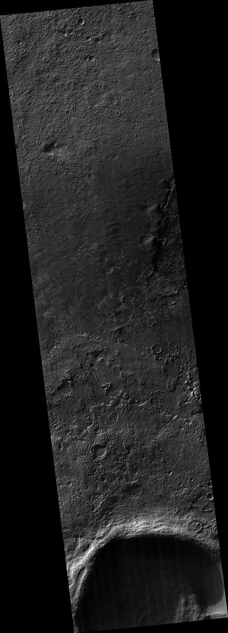 It is now late Northern spring on Mars, so the Southern middle latitudes get very low-sun illumination that accentuates subtle topography.