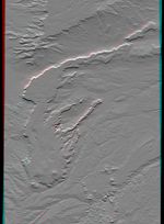 This anaglyph was produced by first shading a preliminary SRTM elevation model. The stereoscopic effect was then created by generating two differing perspectives, one for each eye. When viewed through special glasses, the result is a vertically exaggerated view of the Earth's surface in its full three dimensions. Anaglyph glasses cover the left eye with a red filter and cover the right eye with a blue filter.