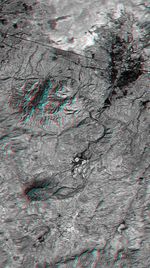 The stereoscopic effect of this anaglyph was created by first draping a Landsat satellite image (taken just two weeks after the earthquake) over preliminary digital elevation data from the SRTM and then generating two differing perspectives, one for each eye. When viewed through special glasses, the result is a vertically exaggerated view of Earth's surface in its full three dimensions. Anaglyph glasses cover the left eye with a red filter and cover the right eye with a blue filter.