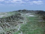 This image was generated by draping an enhanced Landsat satellite image over elevation data from the Shuttle Radar Topography Mission (SRTM). Landsat has been providing visible and infrared views of the Earth since 1972. SRTM elevation data matches the 30-meter resolution of most Landsat images and will substantially help in analyses of the large and growing Landsat image archive. For visualization purposes, topographic heights displayed in this image are exaggerated two times. Colors approximate natural colors.