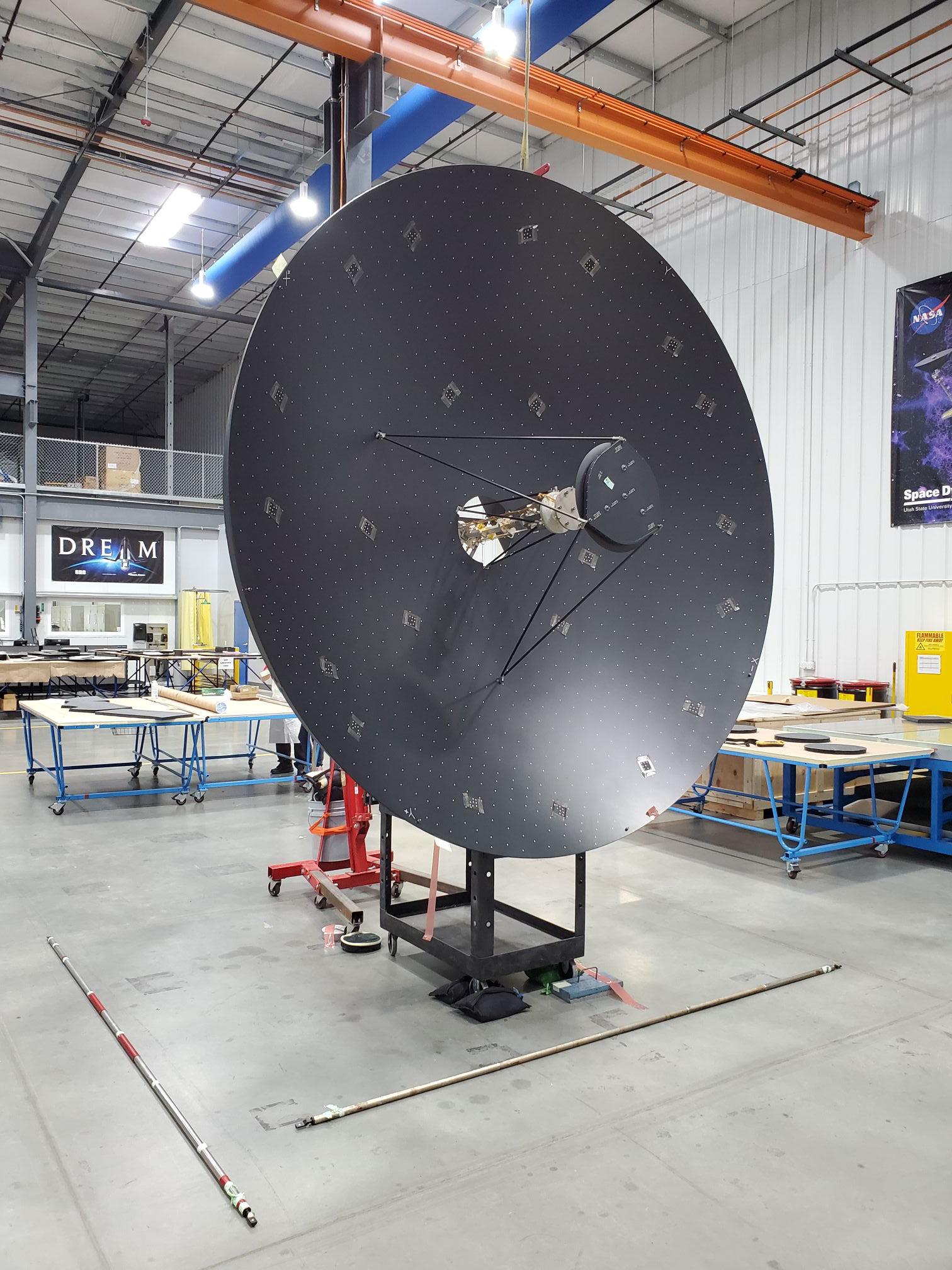 The massive high-gain antenna for NASA's Europa Clipper mission is complete. The antenna is nearly 10 feet (3 meters) wide and will be integrated along with other telecommunications hardware into the spacecraft's propulsion module. The antenna will download science data and allow ground controllers to send and receive commands and data between Earth and the spacecraft in Jupiter orbit – more than a million times farther from Earth than the International Space Station's orbits.