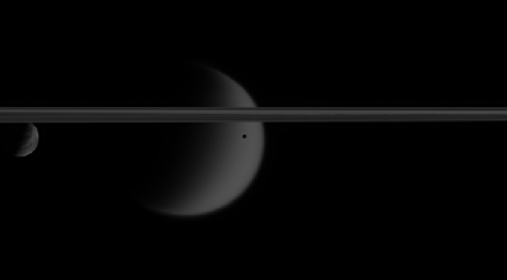 Three of Saturn's moons swim past in this movie sequence of images from the Cassini spacecraft. These sequences, called mutual events, are useful for refining scientists' understanding the orbits of the moons.