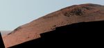 This scene from NASA's Mars Exploration Rover Opportunity looks upward at "Knudsen Ridge" on the southern edge of "Marathon Valley" from inside the valley.