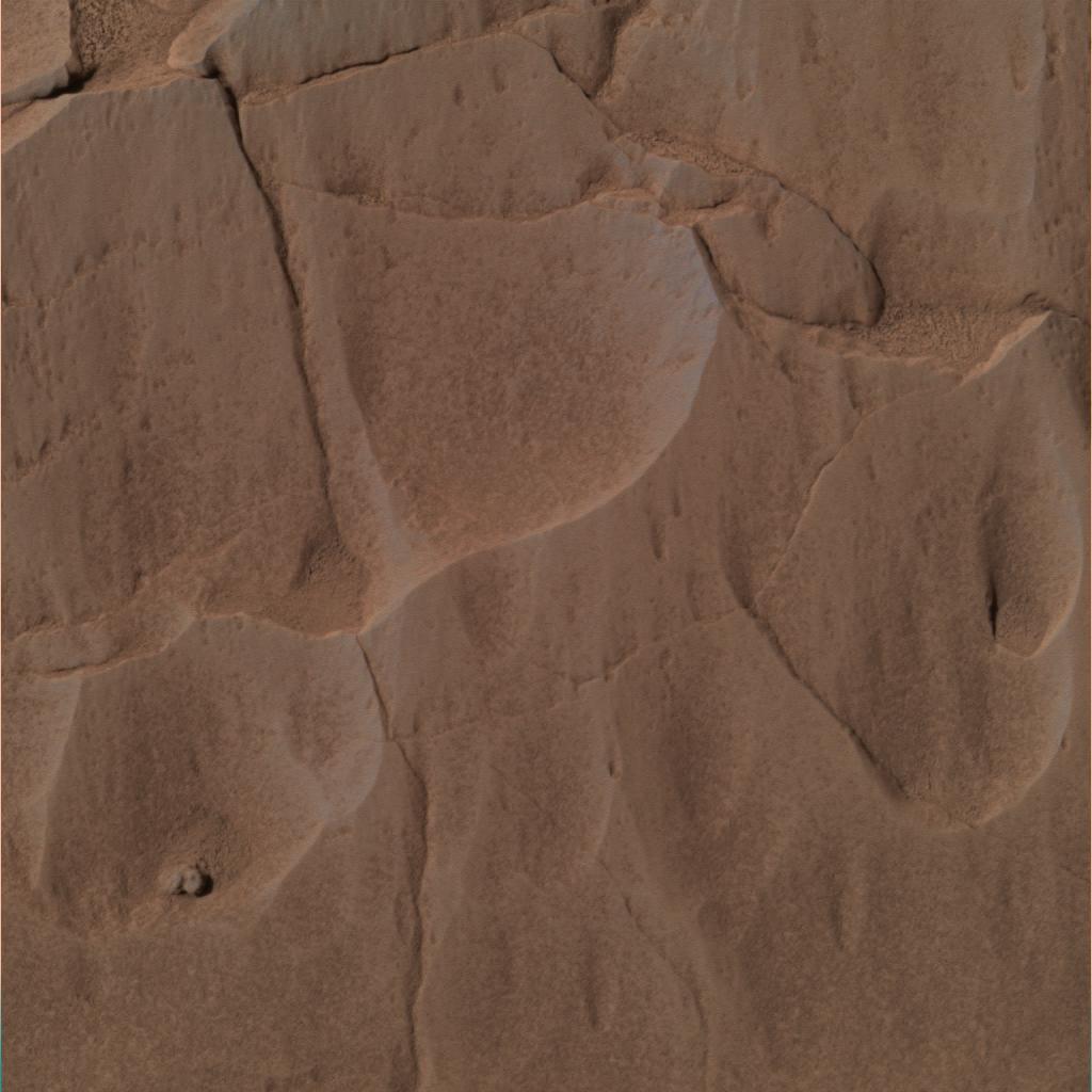 This image was taken by the Mars Exploration Rover Spirit's panoramic camera during the rover's grinding of the rock dubbed "Mazatzal" with its rock abrasion tool. The picture shows the untouched rock on sol 78, which is covered in a light-toned coating and red dust particles. This approximate true-color image was created using the panoramic camera's red, green and blue filters.