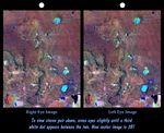 This cross-eyed stereoscopic image pair was generated using topographic data from the Shuttle Radar Topography Mission, combined with an enhanced Landsat 7satellite color image. The topography data are used to create two differing perspectives of a single image, one perspective for each eye. In doing so, each point in the image is shifted slightly, depending on its elevation. When stereoscopically merged, the result is a vertically exaggerated view of the Earth's surface in its full three dimensions.