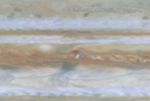 At the beginning of this movie clip, created from images taken by NASA's Cassini spacecraft, a small white spot, probably a thunderstorm, lies to the south of a larger, brown spot on Jupiter. The white spot moves counterclockwise around the brown spot and breaks up. A part of the white spot is absorbed by the brown spot.