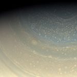 Saturn's north pole is littered with storms, as we see in this color view of the pole. A bit of the north polar hexagon is also visible at the upper-right.