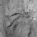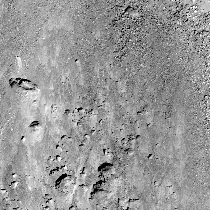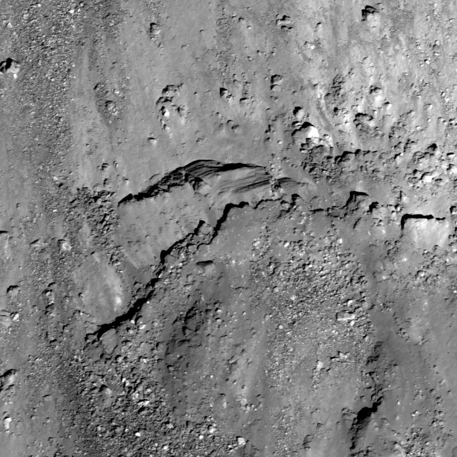 Another large section of ejecta 80 meters long from the same crater and NAC frame also appears to have layers (left side of image)