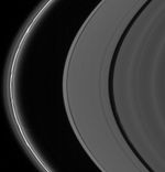 The A and F rings are alive with moving structures in this Cassini spacecraft view. Graceful drapes of ring material created by Prometheus are seen sliding by at left, while clumpy ringlets slip through the Encke Gap.