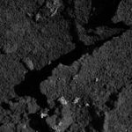This image from the microscopic imager instrument on NASA's Mars Exploration Rover Spirit shows a feature called "String of Pearls" that resides within the area dubbed "Hanks Hollow." The "string" consists of a set of bright spots. These are the partially exposed interiors of rocks that were broken-up when Spirit's wheels roved across this surface. Scientists believe the rocks exposed in Hank's Hollow may have been generated or modified by water-rich fluids. The image was taken on sol 177 (July 2, 2004).
