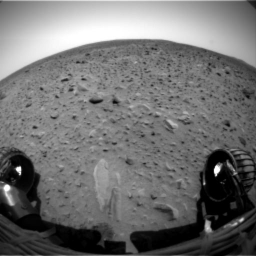 This animation is created from still images taken by the Mars Exploration Rover Spirit during its approximately 21.2-meter (69.6-foot) drive across the pebbly ground at Gusev Crater, Mars, on the 37th day, or sol, of its mission (Feb. 9, 2004). Two sols later, Spirit drove another 24 meters (78.7 feet) toward a rock target called White Boat. The images were captured by the rover's front hazard-avoidance camera after it began the autonomous portion of its drive.