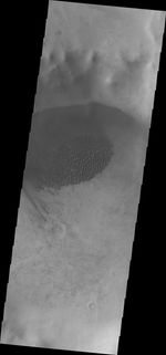 Located in a small unnamed crater southwest of Kuiper Crater, the dunes in this image are completely free of frost. This state won't last long as southern summer has ended and the long dark of southern winter is soon to begin.