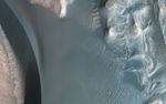 This image reveals a unique situation where this small dune field occurs along the summit of the large 1-mile-tall mound near the center of Juventae Chasma. The layered mound slopes are far too steep for dunes to climb, and bedform sand is unlikely to come from purely airborne material. Instead, the mound's summit displays several dark-toned, mantled deposits that are adjacent to the dunes and appear to be eroding into fans of sandy material.