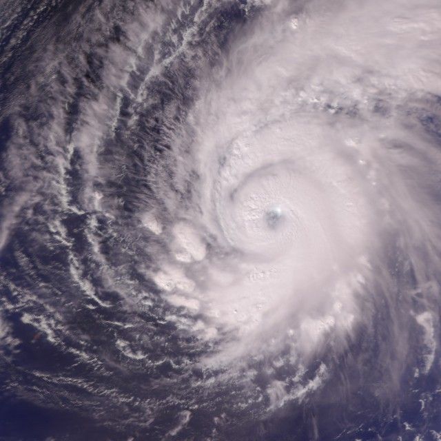 This image was made using visible/near-infrared data using the AIRS instrument. Its 2-kilometer (1.24-mile) resolution shows fine details of the cloud structure and can be used to help interpret the other images. It confirms that the eye was not cloud free at the time the data was acquired, and pinpoints towering thunderheads rising up in several areas of the spiral arms (see figure 1 for close-up).