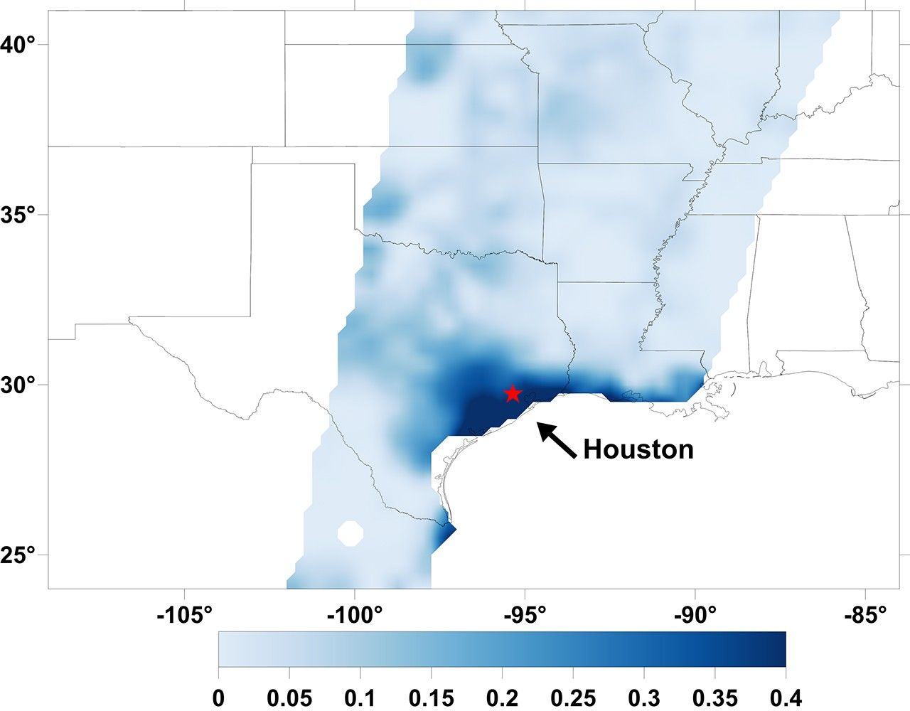A new series of images generated with data from NASA's Soil Moisture Active Passive (SMAP) satellite illustrate the surface flooding caused by Hurricane Harvey from before its initial landfall through August 27, 2017. The SMAP observations detect the proportion of the ground covered by surface water within the satellite's field of view. The sequence of images depicts successive satellite orbital swath observations showing the surface water conditions on August 22, before Harvey's landfall (left), and then on Aug. 27, two days after landfall (middle). The resulting increase in surface flooding from record rainfall over the three-day period, shown at right, depicts regionally heavy flooding around the Houston metropolitan area. The hardest hit areas (blue and purple shades) cover more than 23,000 square miles (about 59,600 square kilometers) and indicate a more than 1,000-fold increase in surface water cover from rainfall-driven flooding. SMAP's low-frequency (L-band) microwave radiometer features enhanced capabilities for detecting surface water changes in nearly all weather conditions and under low-to-moderate vegetation cover. The satellite provides global coverage with one to three-day repeat sampling, which is well suited for monitoring dynamic inland waters around the world.
